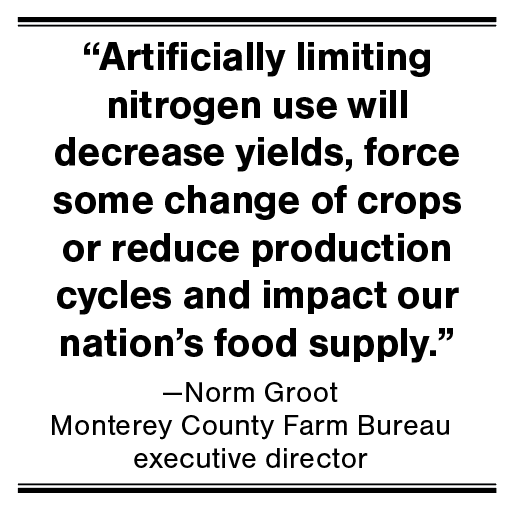 In discussing the issue, Monterey County Farm Bureau Executive Director Norm Groot told Ag Alert® that Central Coast farmers acknowledge that past nitrogen use has affected groundwater quality, but improved agronomics have allowed growers to manage fertilizer use more efficiently.