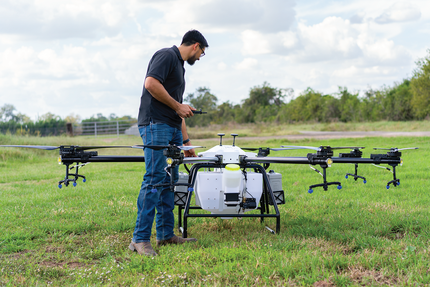 Hylio’s unmanned aerial vehicles, or UAVs, range in size from small drones with 2.5-gallon tanks to 16-foot-wide drones with 18-gallon tanks, with prices ranging from $25,000 to $75,000.
