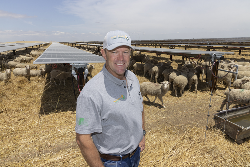 Our clients hire us for fire fuel-loads mitigation and reduction. A lot of them are institutions and private equity funds. They have insurance contracts that they must adhere to, and the covenants in those contracts require them to manage the vegetation under the panels because these solar sites are hundreds of millions of dollars in value. The insurance contracts are very strict because of the liability involved. If a fire were to break out in a live power plant, it would be catastrophic and disastrous. As sheep grazers, we manage and reduce that vegetation.